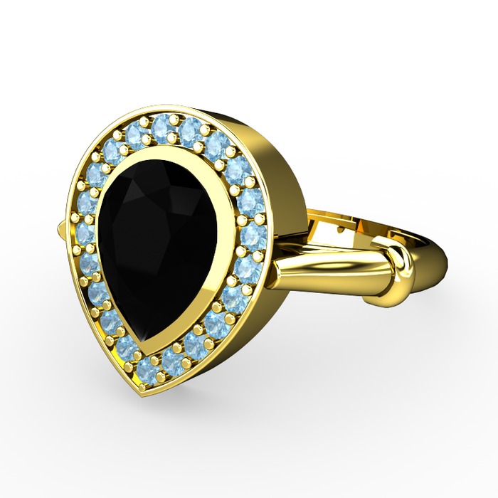 Siyah zirkon ve akuamarin 14 ayar altın yüzük