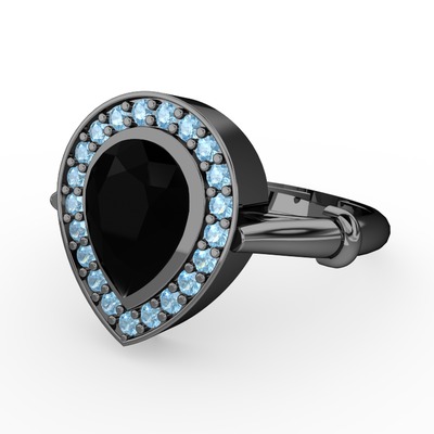 Siyah zirkon ve akuamarin 925 ayar siyah rodyum kaplama gümüş yüzük