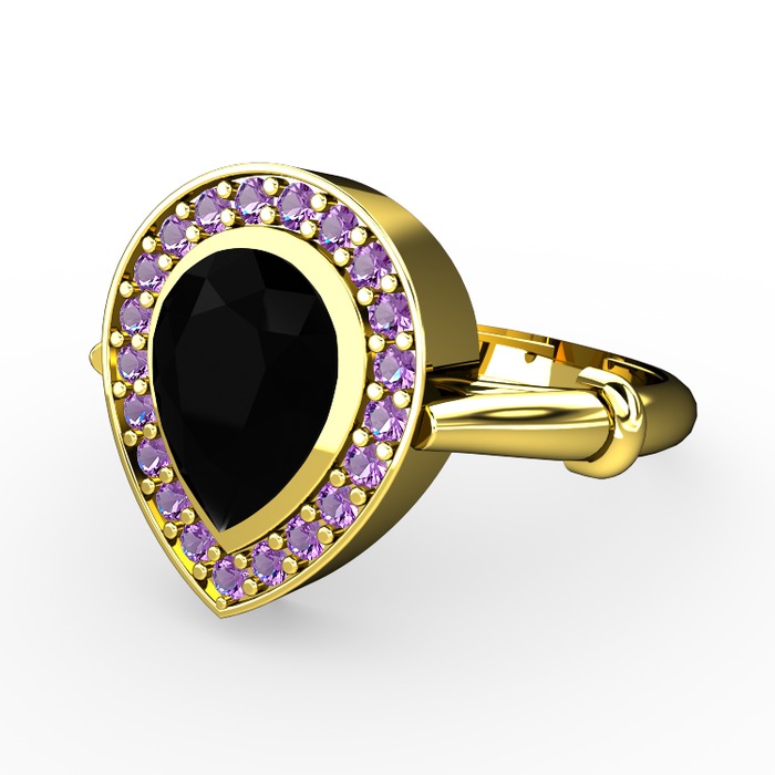 Siyah zirkon ve ametist 14 ayar altın yüzük