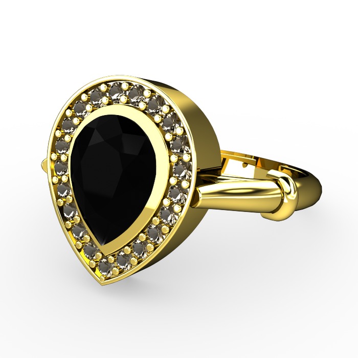 Siyah zirkon ve dumanlı kuvars 8 ayar altın yüzük