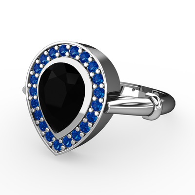 Siyah zirkon ve lab safir 14 ayar beyaz altın yüzük