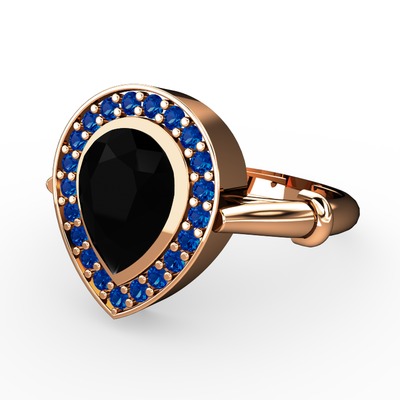 Siyah zirkon ve lab safir 925 ayar rose altın kaplama gümüş yüzük