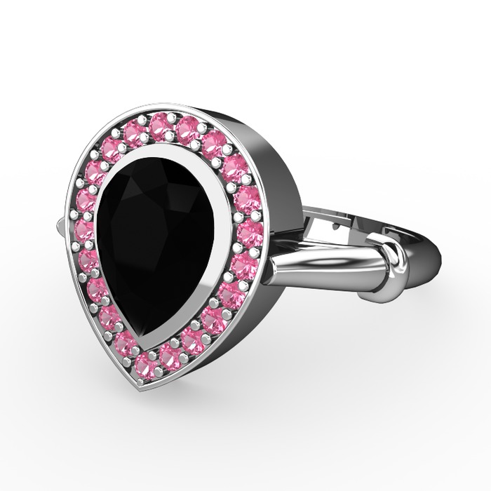 Siyah zirkon ve pembe kuvars 925 ayar gümüş yüzük