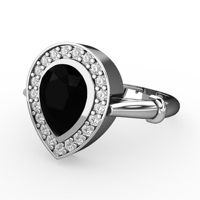 Siyah zirkon ve pırlanta 18 ayar beyaz altın yüzük (0.22 karat)