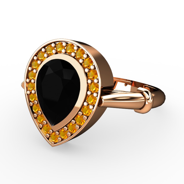 Siyah zirkon ve sitrin 14 ayar rose altın yüzük