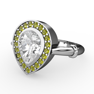 Swarovski ve peridot 8 ayar beyaz altın yüzük