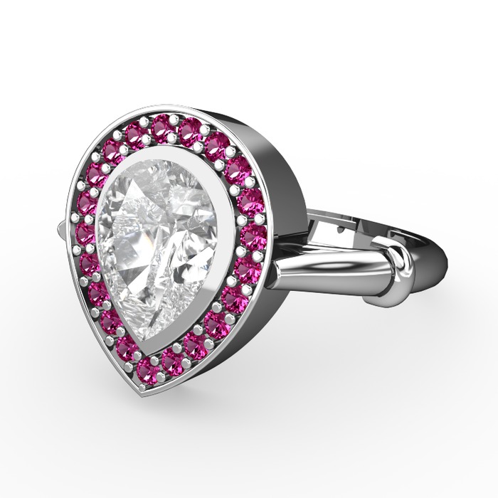 Swarovski ve rodolit garnet 14 ayar beyaz altın yüzük
