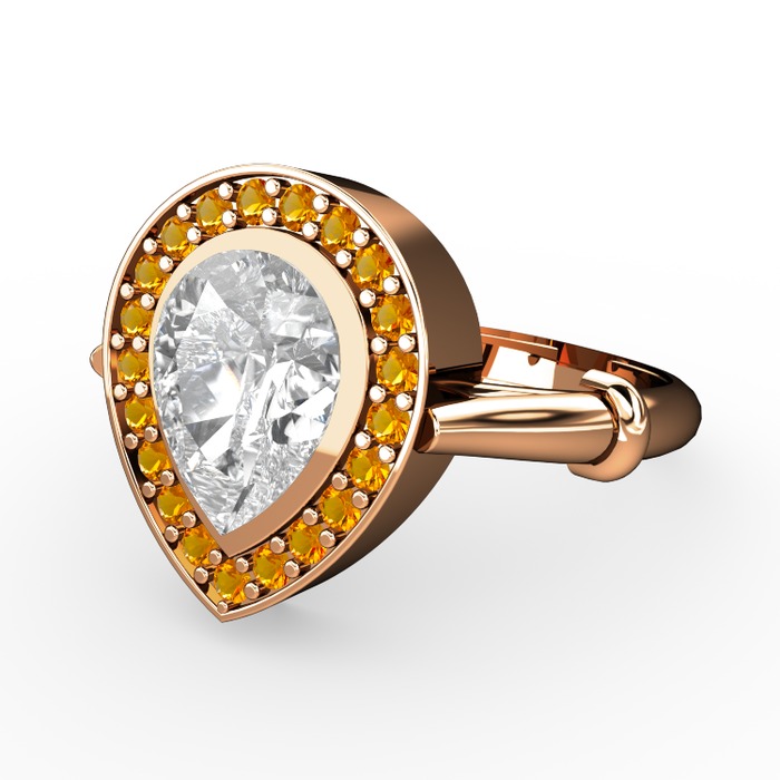 Swarovski ve sitrin 18 ayar rose altın yüzük
