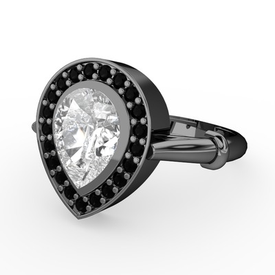 Swarovski ve siyah zirkon 925 ayar siyah rodyum kaplama gümüş yüzük