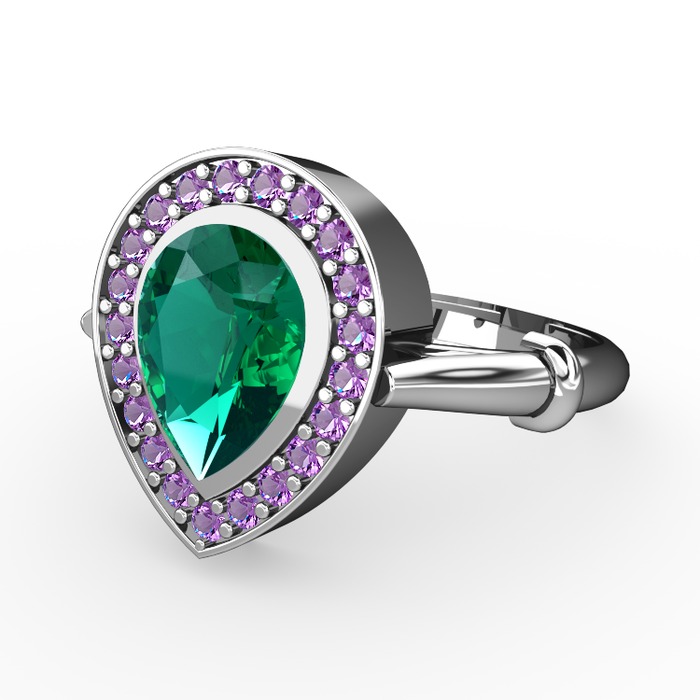 Yeşil kuvars ve ametist 8 ayar beyaz altın yüzük