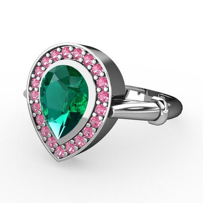 Yeşil kuvars ve pembe kuvars 8 ayar beyaz altın yüzük