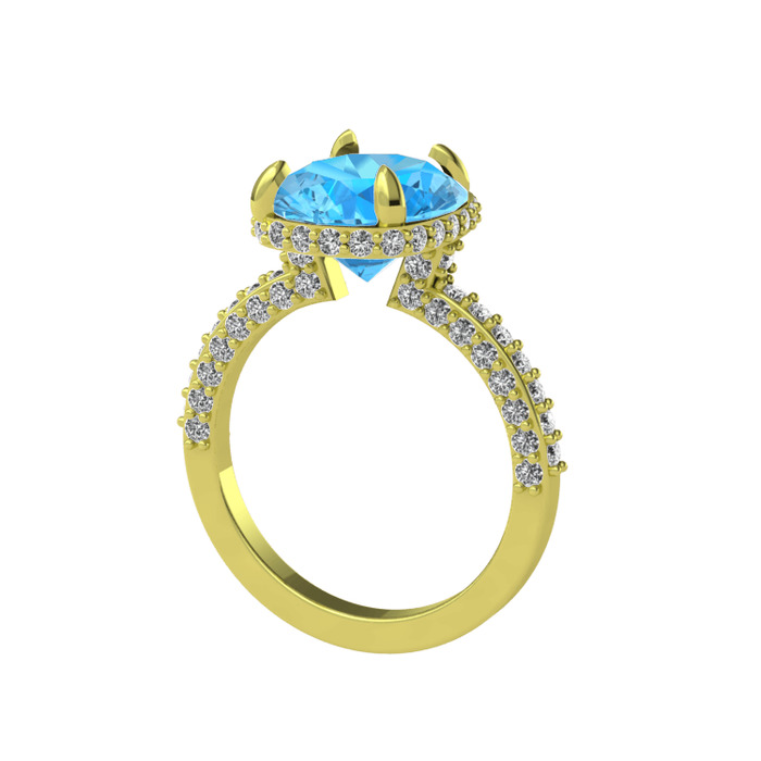 Akuamarin ve beyaz zirkon 18 ayar altın yüzük