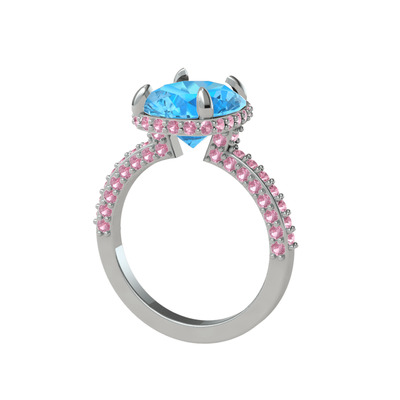 Akuamarin ve pembe kuvars 18 ayar beyaz altın yüzük