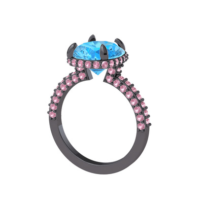 Akuamarin ve pembe kuvars 925 ayar siyah rodyum kaplama gümüş yüzük