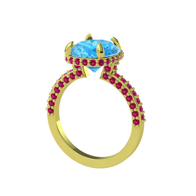 Akuamarin ve rodolit garnet 14 ayar altın yüzük