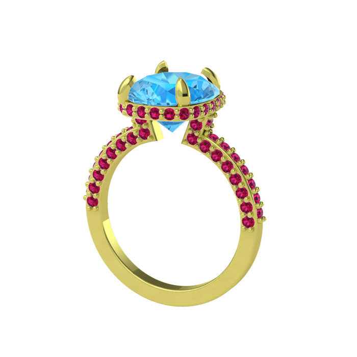 Akuamarin ve rodolit garnet 18 ayar altın yüzük