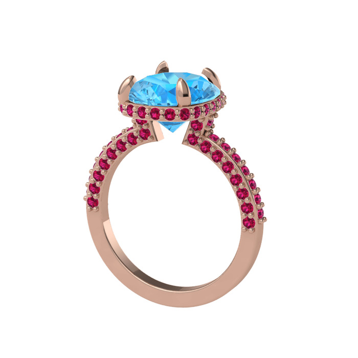 Akuamarin ve rodolit garnet 8 ayar rose altın yüzük