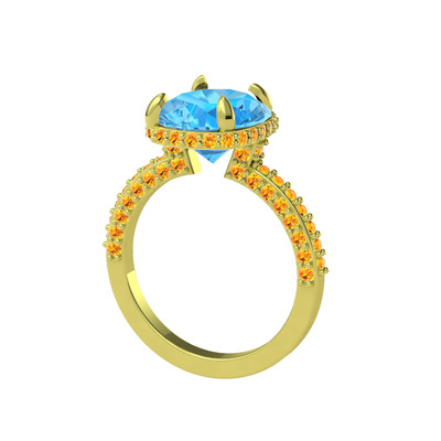 Akuamarin ve sitrin 925 ayar altın kaplama gümüş yüzük