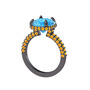 Akuamarin ve sitrin 925 ayar siyah rodyum kaplama gümüş yüzük