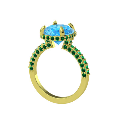 Akuamarin ve yeşil kuvars 18 ayar altın yüzük