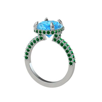 Akuamarin ve yeşil kuvars 18 ayar beyaz altın yüzük