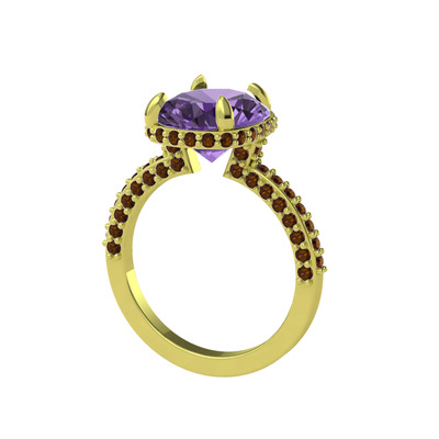 Ametist ve dumanlı kuvars 925 ayar altın kaplama gümüş yüzük