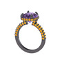 Ametist ve sitrin 925 ayar siyah rodyum kaplama gümüş yüzük