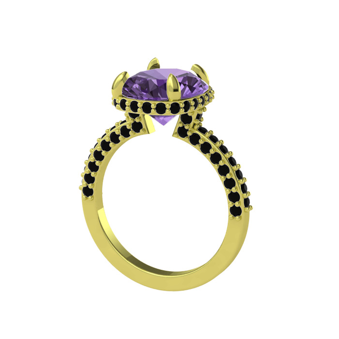 Ametist ve siyah zirkon 8 ayar altın yüzük