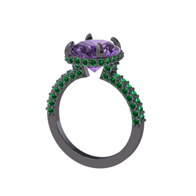 Ametist ve yeşil kuvars 925 ayar siyah rodyum kaplama gümüş yüzük