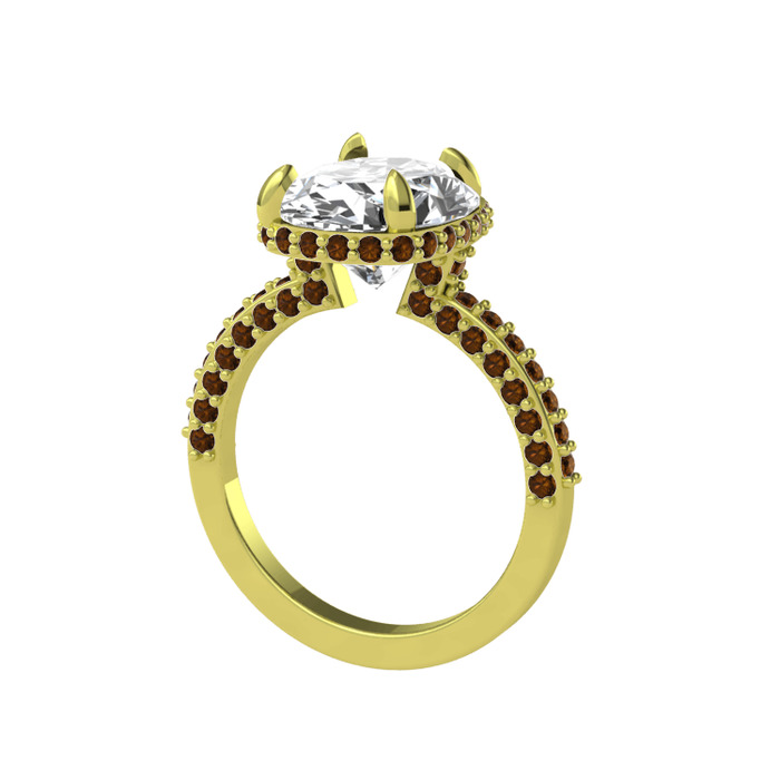 Beyaz zirkon ve dumanlı kuvars 925 ayar altın kaplama gümüş yüzük