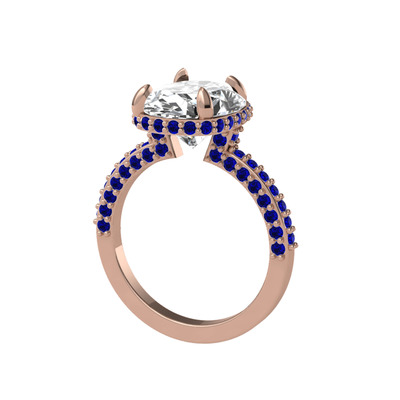 Beyaz zirkon ve lab safir 8 ayar rose altın yüzük