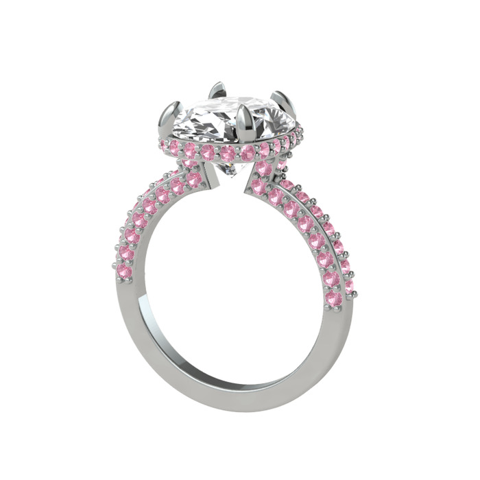 Beyaz zirkon ve pembe kuvars 18 ayar beyaz altın yüzük