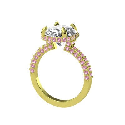 Beyaz zirkon ve pembe kuvars 925 ayar altın kaplama gümüş yüzük