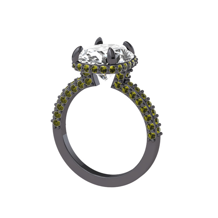 Beyaz zirkon ve peridot 925 ayar siyah rodyum kaplama gümüş yüzük