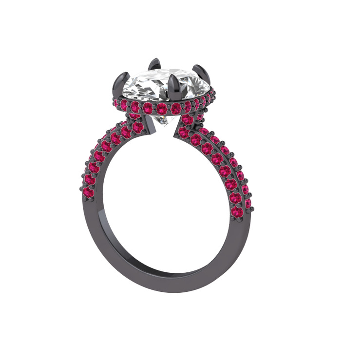 Beyaz zirkon ve rodolit garnet 925 ayar siyah rodyum kaplama gümüş yüzük