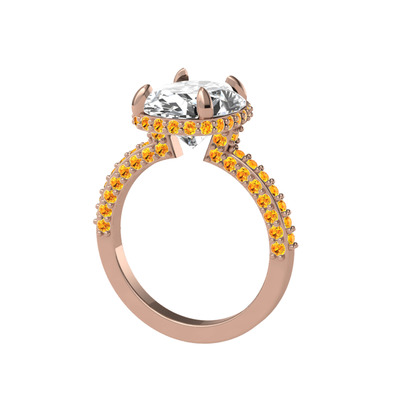 Beyaz zirkon ve sitrin 925 ayar rose altın kaplama gümüş yüzük