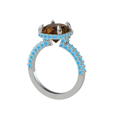 Dumanlı kuvars ve akuamarin 925 ayar gümüş yüzük
