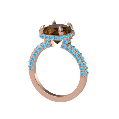 Dumanlı kuvars ve akuamarin 925 ayar rose altın kaplama gümüş yüzük