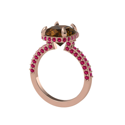 Dumanlı kuvars ve rodolit garnet 18 ayar rose altın yüzük
