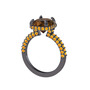Dumanlı kuvars ve sitrin 925 ayar siyah rodyum kaplama gümüş yüzük