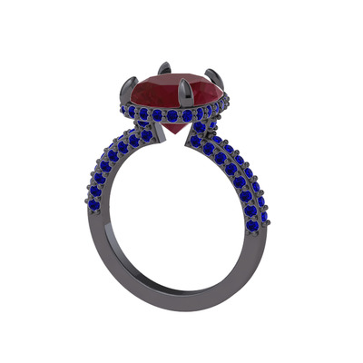 Kök yakut ve lab safir 925 ayar siyah rodyum kaplama gümüş yüzük