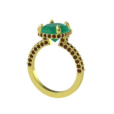 Kök zümrüt ve dumanlı kuvars 925 ayar altın kaplama gümüş yüzük