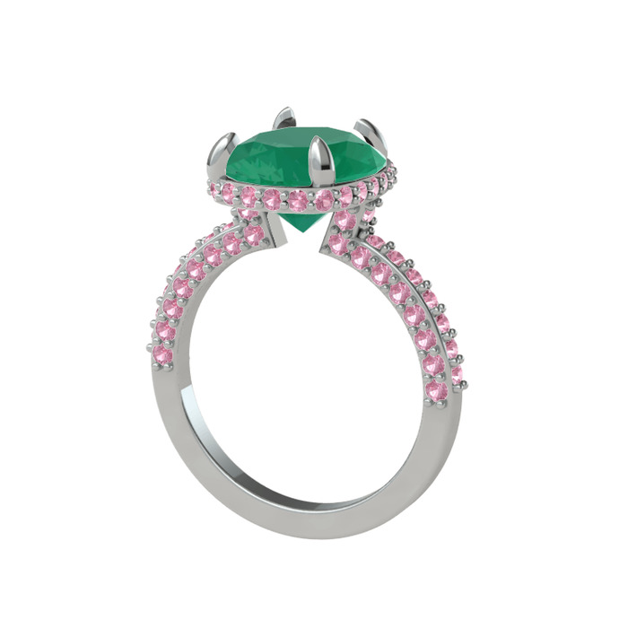Kök zümrüt ve pembe kuvars 8 ayar beyaz altın yüzük