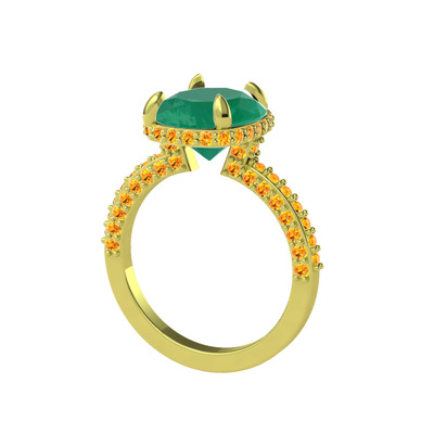 Kök zümrüt ve sitrin 8 ayar altın yüzük