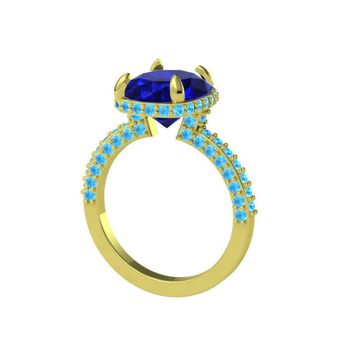 Lab safir ve akuamarin 925 ayar altın kaplama gümüş yüzük