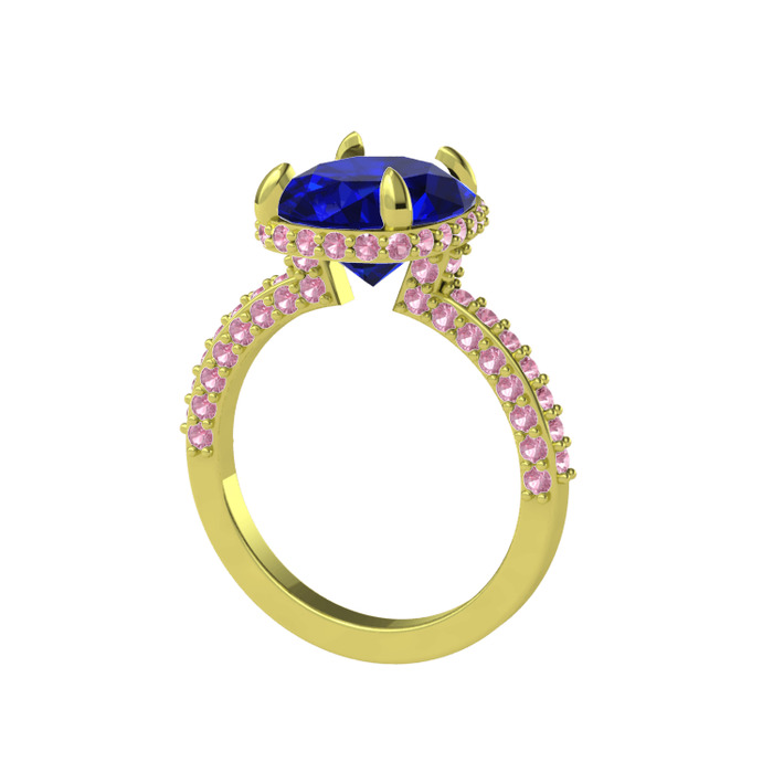 Lab safir ve pembe kuvars 925 ayar altın kaplama gümüş yüzük