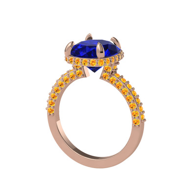 Lab safir ve sitrin 14 ayar rose altın yüzük