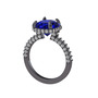 Lab safir ve swarovski 925 ayar siyah rodyum kaplama gümüş yüzük