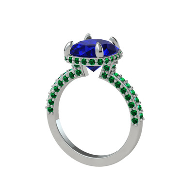 Lab safir ve yeşil kuvars 18 ayar beyaz altın yüzük