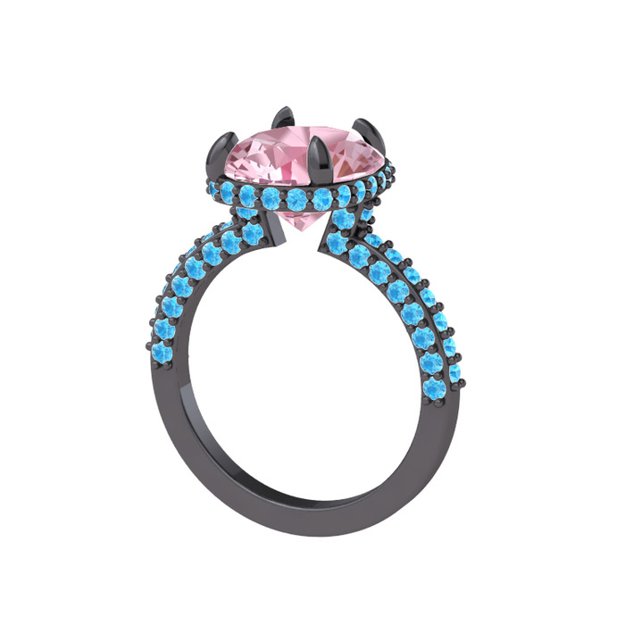Pembe kuvars ve akuamarin 925 ayar siyah rodyum kaplama gümüş yüzük